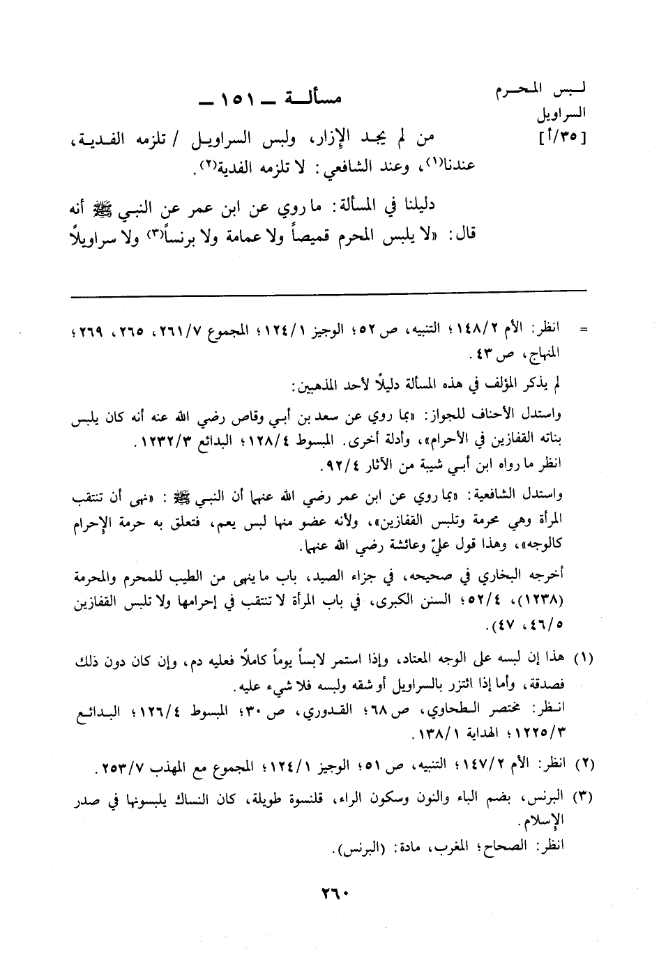 مسألة: 151 - لبس المحرم السراويل