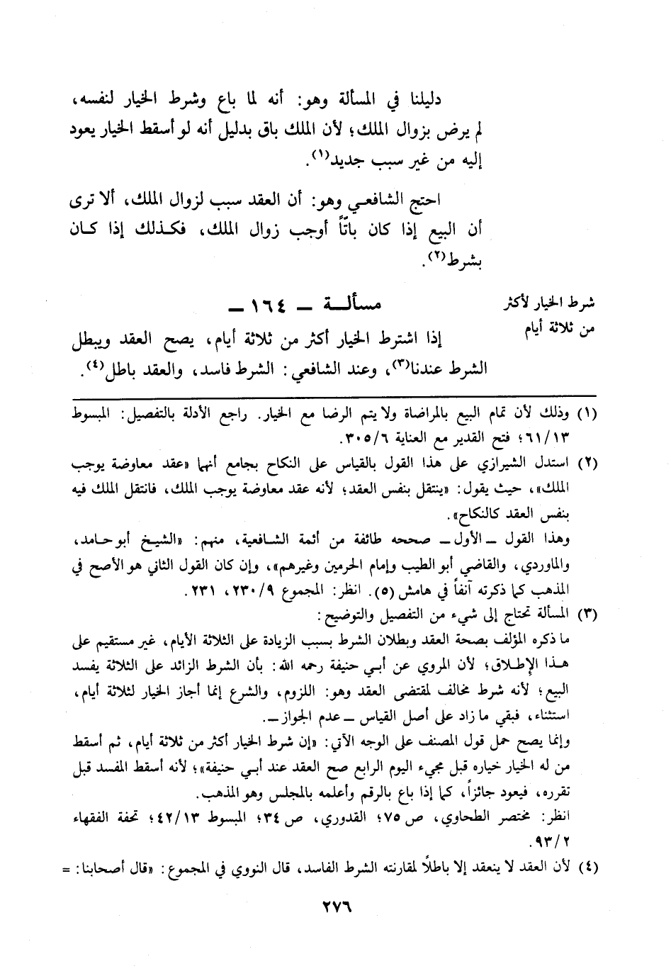 مسألة: 164 - شرط الخيار لأكثر من ثلاثة أيام