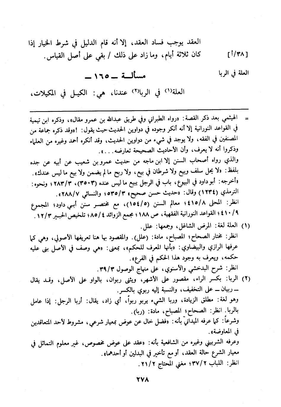 مسألة: 165 - العلة في الربا