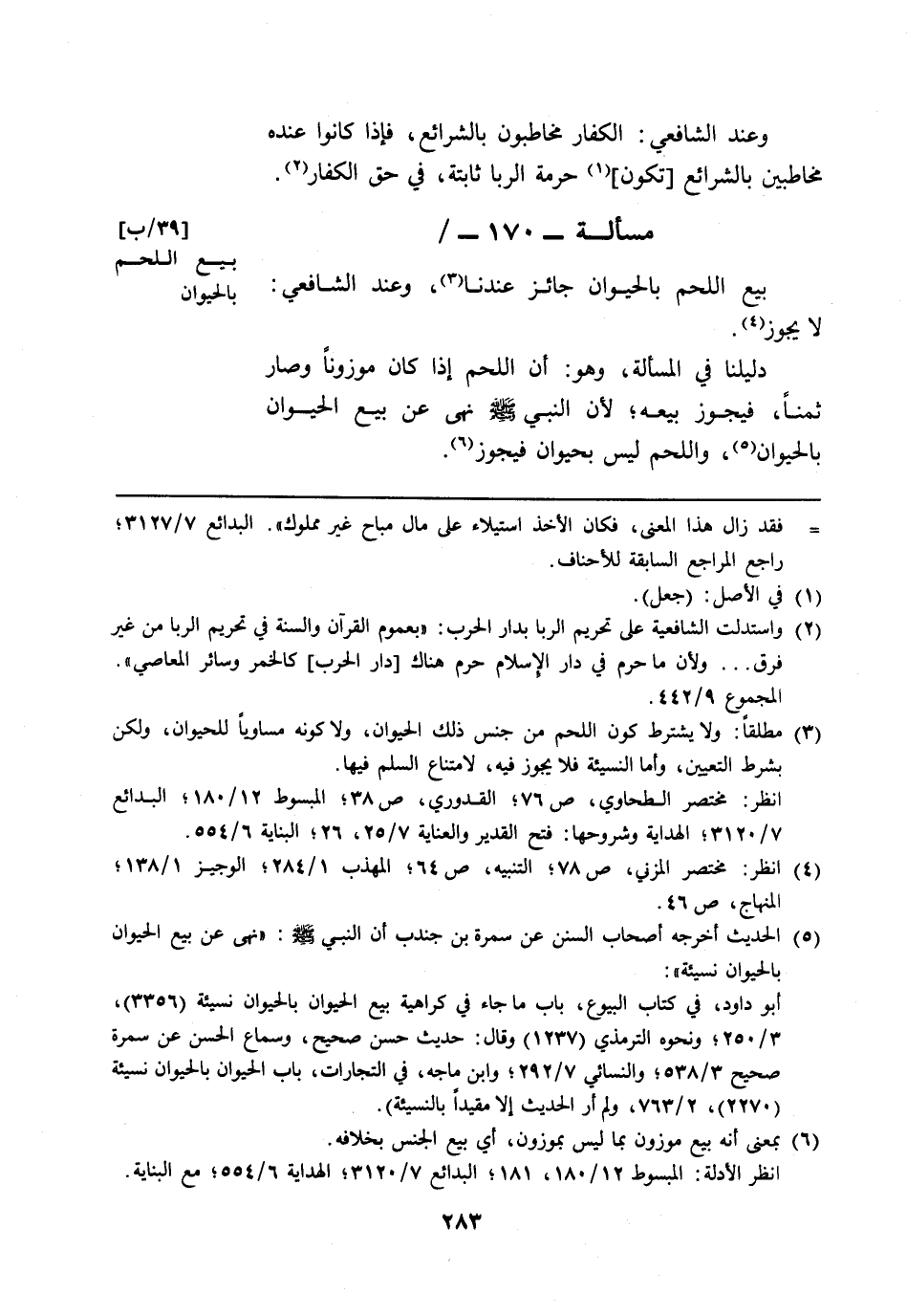 مسألة: 170 - بيع اللحم بالحيوان