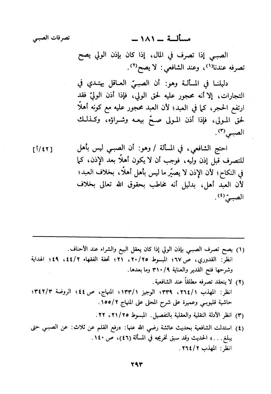 مسألة: 181 - تصرفات الصبي