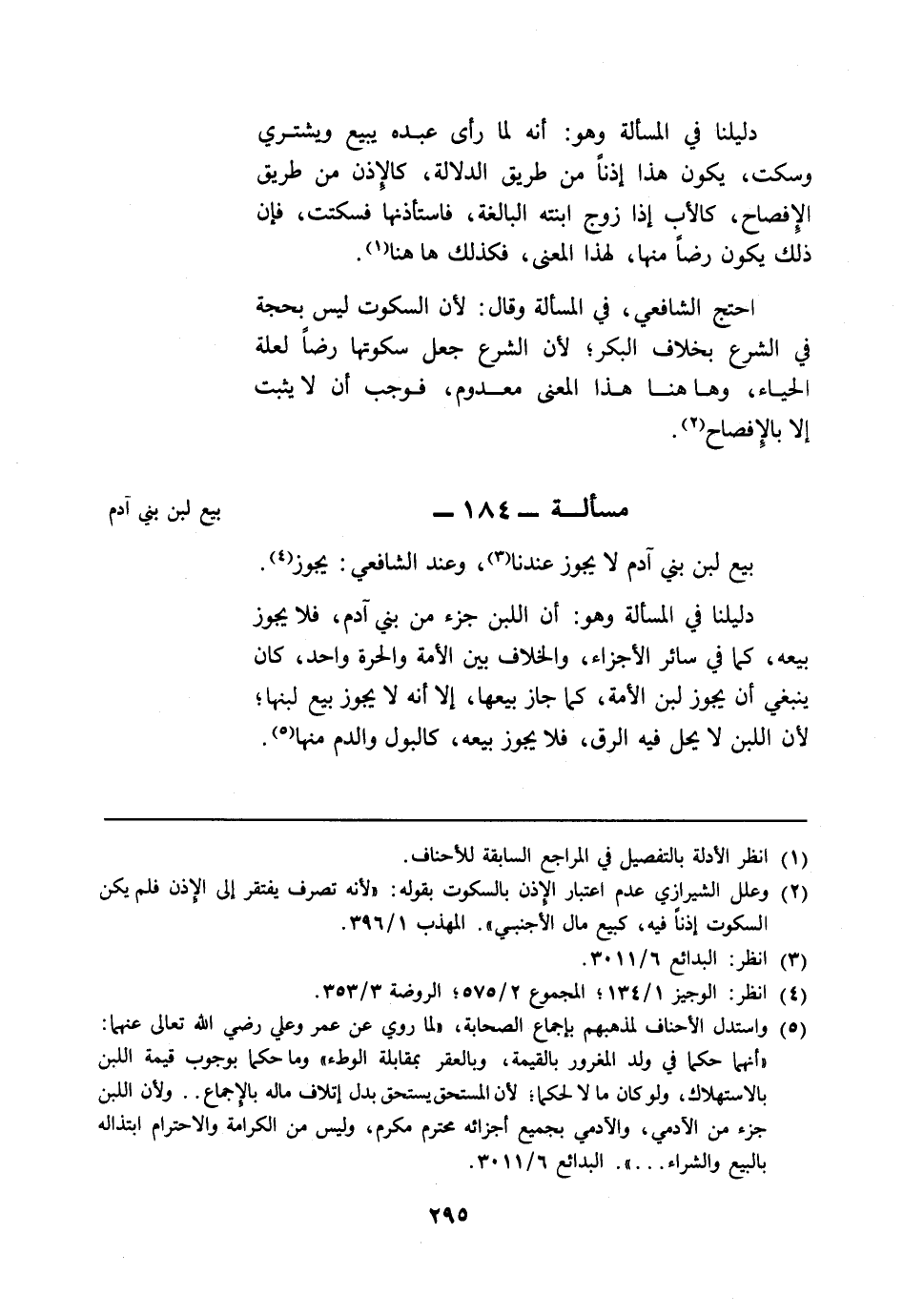 مسألة: 184 - بيع لبن بني آدم