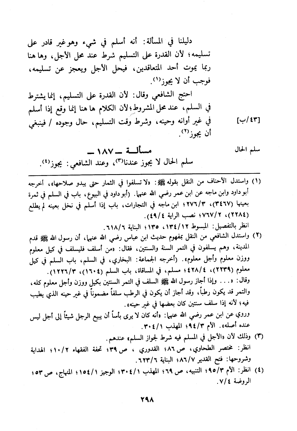 (¬3) وذلك لأن "الأجل في المسلم فيه شرط لجواز السلم" عندهم.
