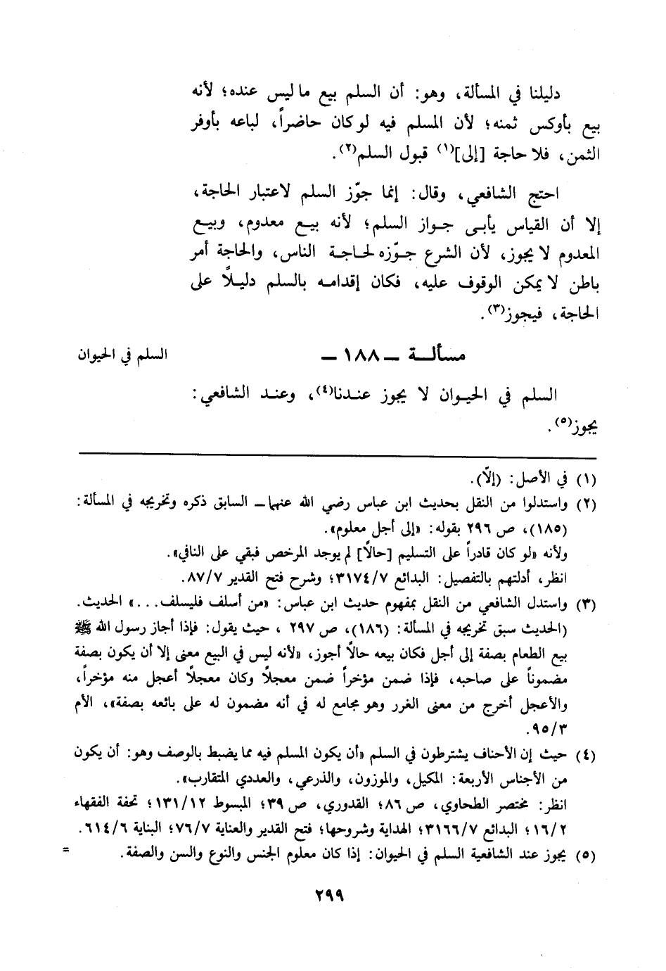 (¬5) يجوز عند الشافعية السلم في الحيوان: إذا كان معلوم الجنس والنوع والسن والصفة. =
