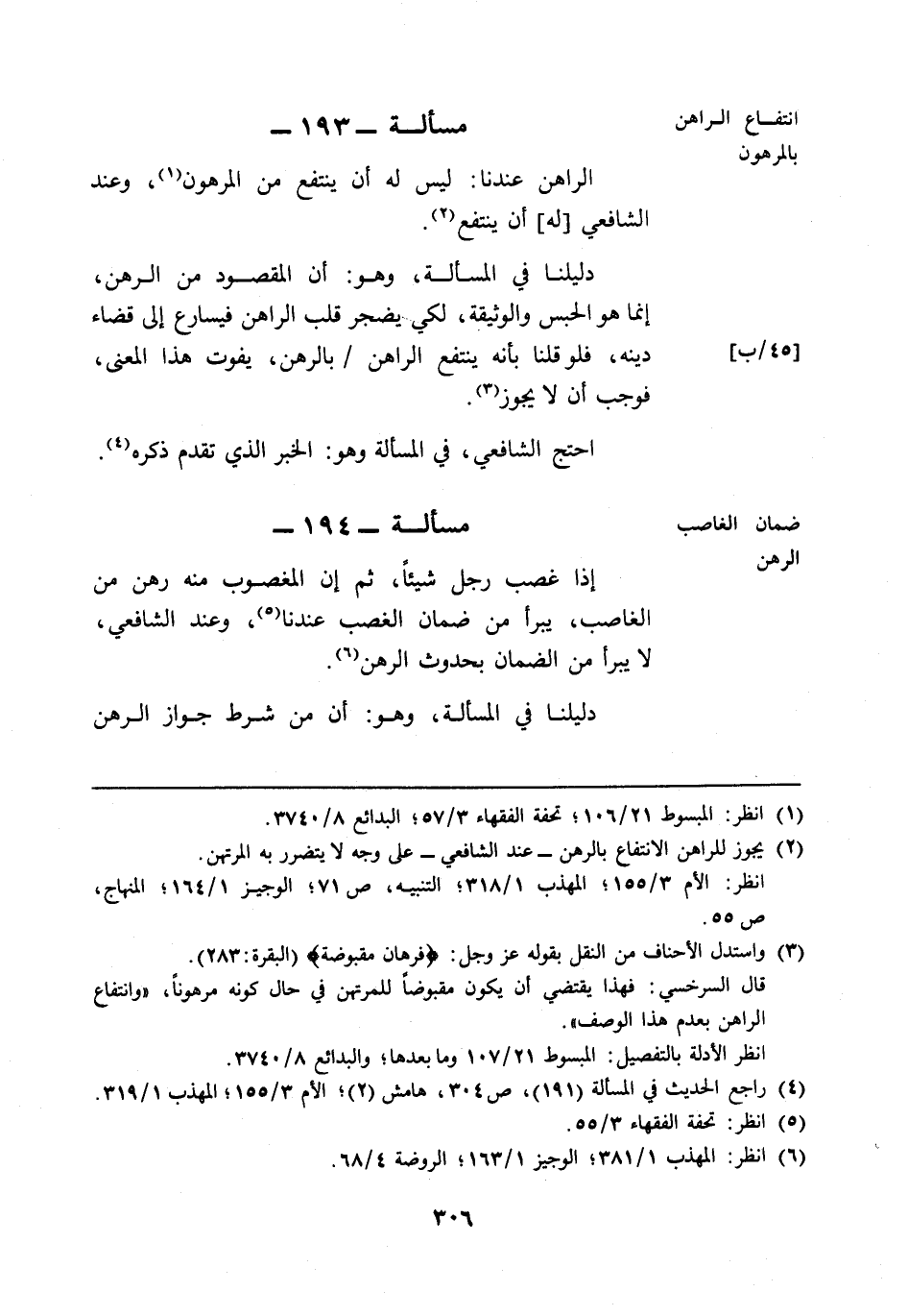(¬1) انظر: المبسوط 21/ 106؛ تحفة الفقهاء 3/ 57؛ البدائع 8/ 3740.