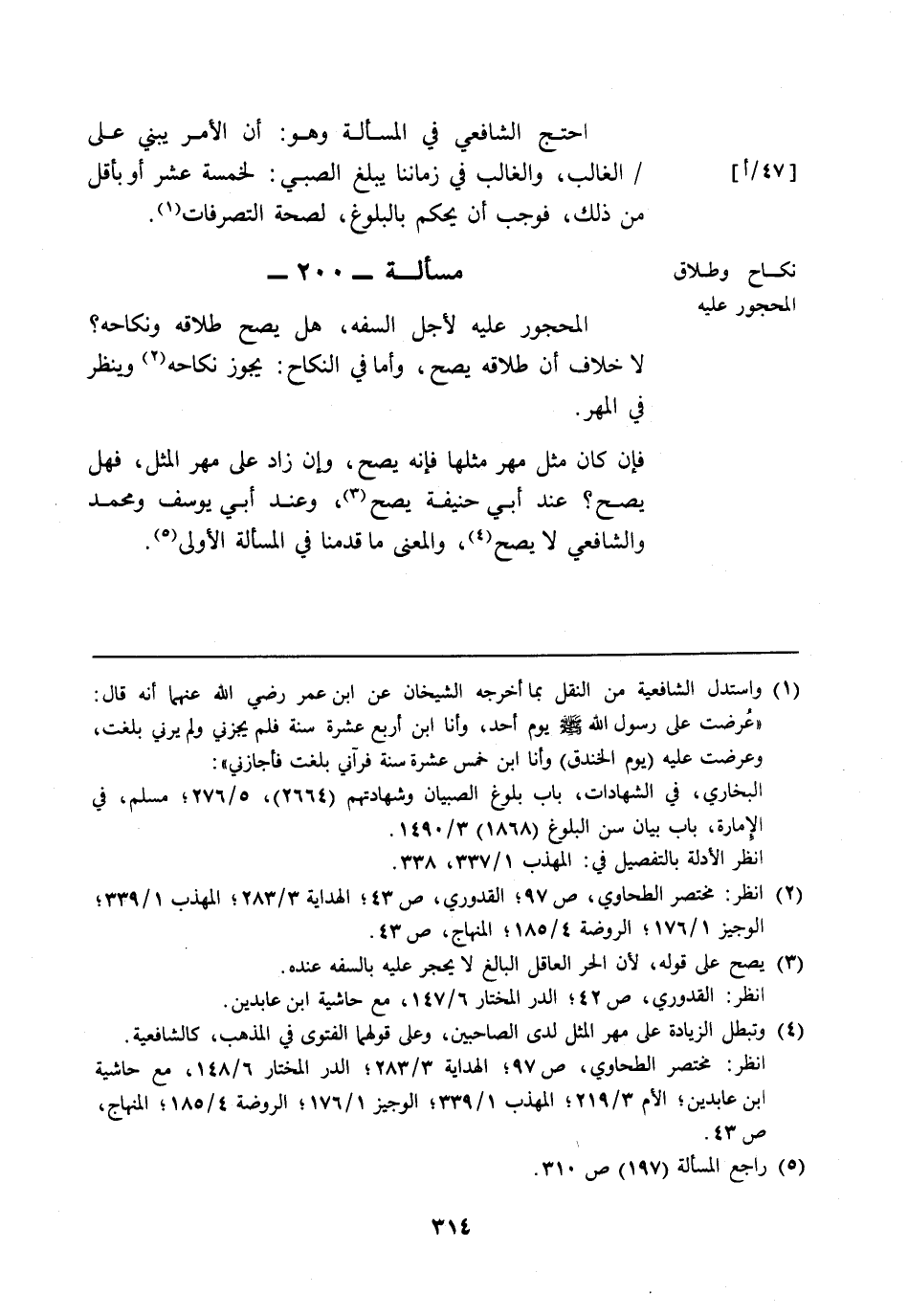 (¬2) انظر: مختصر الطحاوي، ص 97؛ القدوري، ص 43؛ الهداية 3/ 283؛ المهذب 1/ 339؛ الوجيز 1/ 176؛ الروضة 4/ 185؛ المنهاج، ص 43.