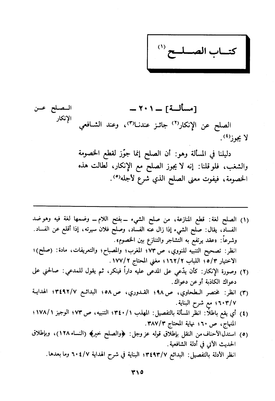 (¬5) استدل الأحناف من النقل بإطلاق قوله عز وجل: {وَالصُّلْحُ خَيْرٌ} (النساء: 128)، وبإطلاق الحديث الآتي في أدلة الشافعية.
