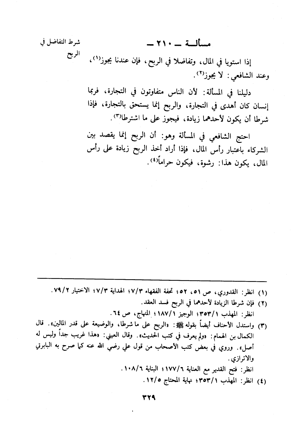 مسألة: 210 - شرط التفاضل في الربح