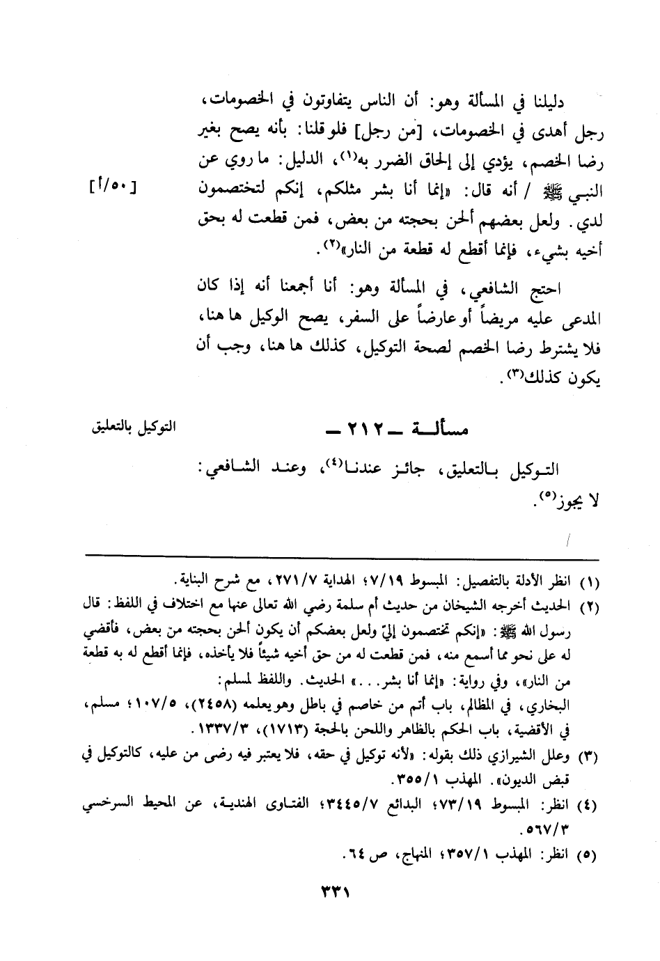 مسألة: 212 - التوكيل بالتعليق