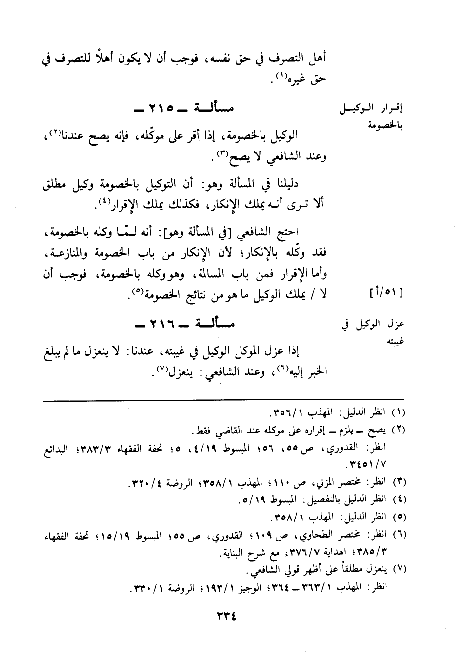 (¬6) انظر: مختصر الطحاوي، ص 109؛ القدوري، ص 55؛ البسوط 15/ 19؛ تحفة الفقهاء 3/ 385؛ الهداية 7/ 376، مع شرح البناية.
