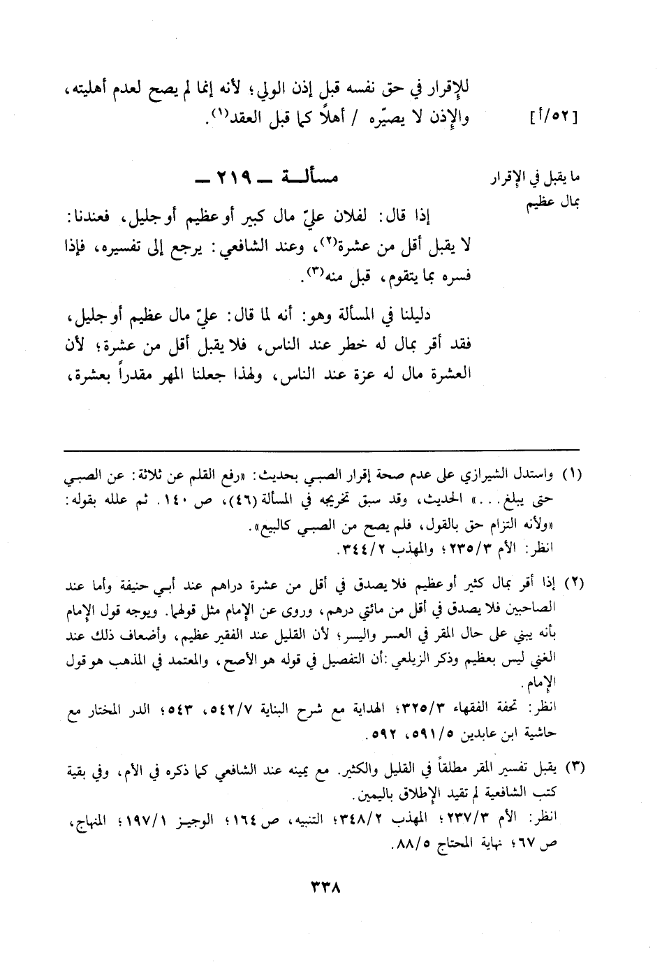 مسألة: 219 - ما يقبل في الإقرار بمال عظيم