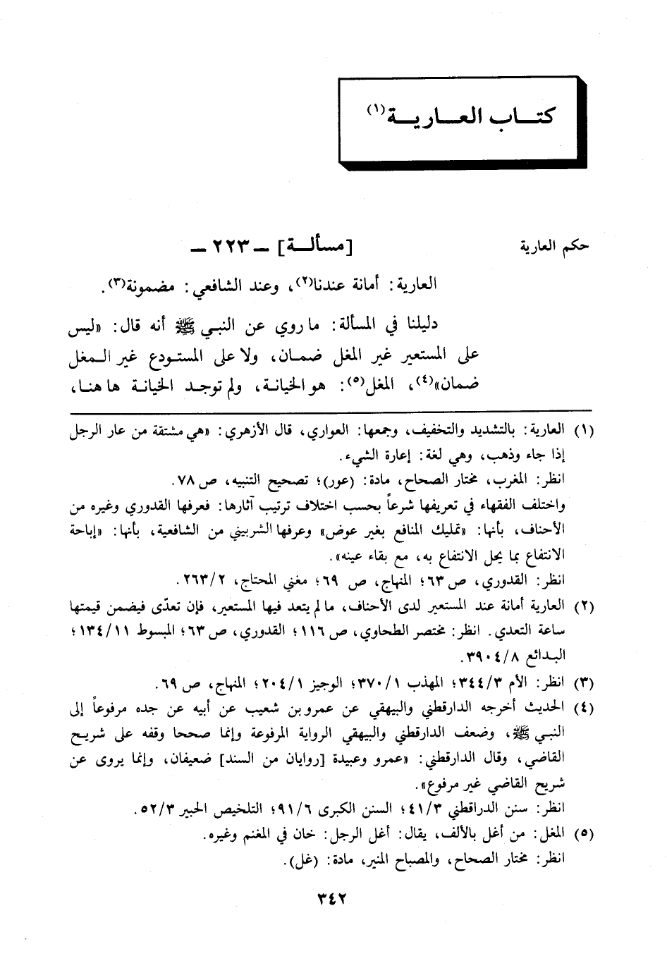 [مسألة]: 223 - حكم العارية