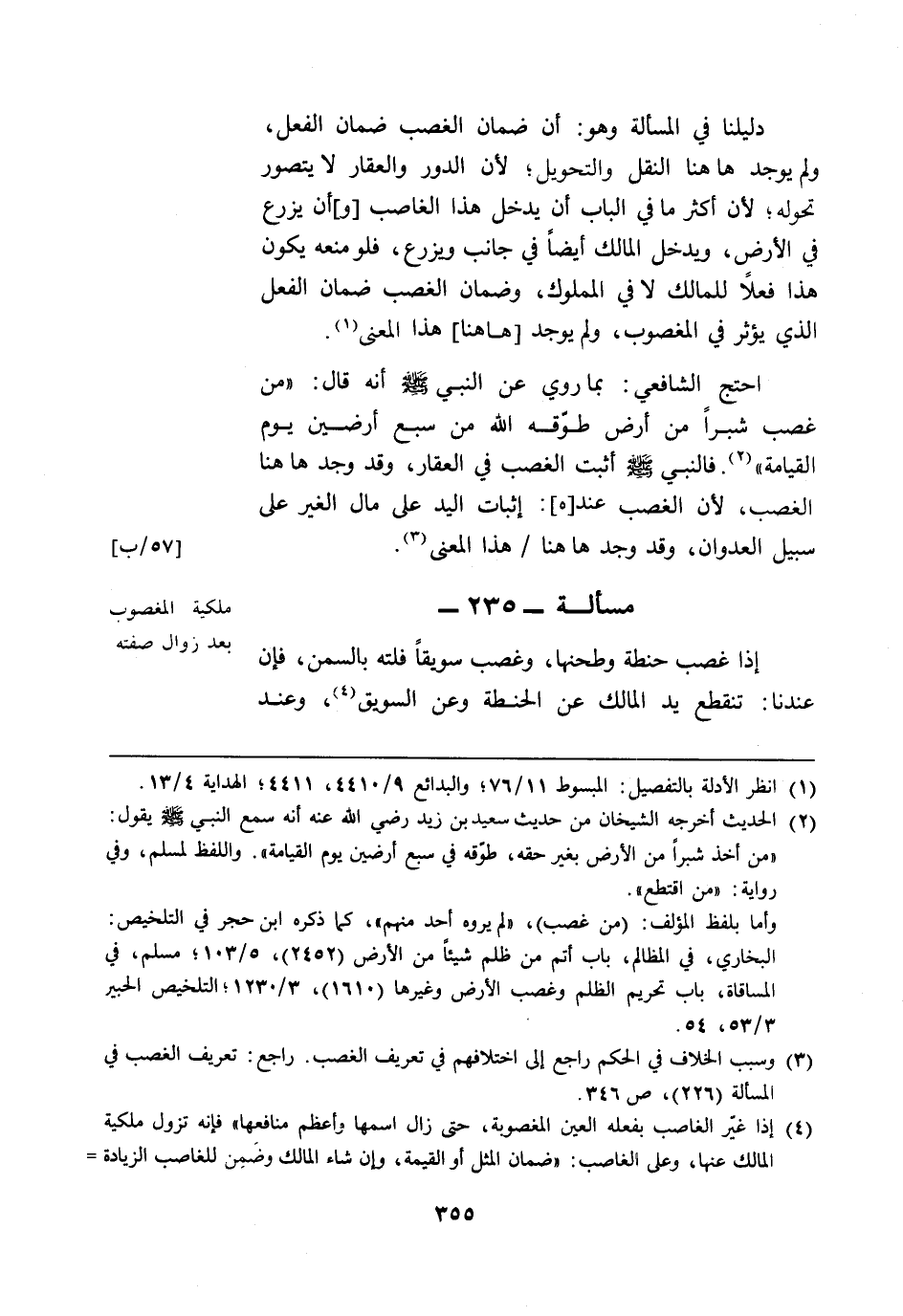 (¬2) الحديث أخرجه الشيخان من حديث سعيد بن زيد رضي الله عنه أنه سمع النبي - صلى الله عليه وسلم - يقول: "من أخذ شبرًا من الأرض بغير حقه، طوّقه في سبع أرضين يوم القيامة". واللفظ لمسلم، وفي رواية: "من اقتطع".