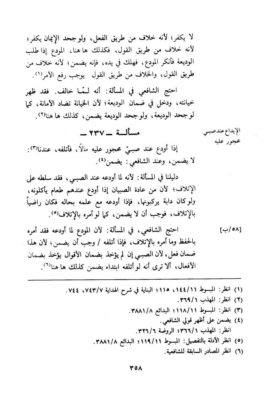 مسألة: 237 - الإيداع عند صبي محجور عليه