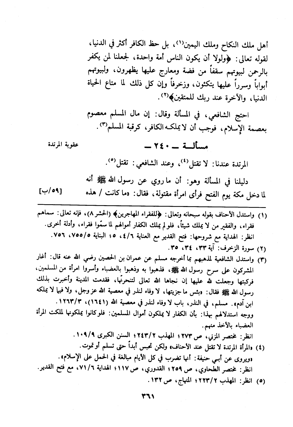 (¬4) "المرأة المرتدة لا تقتل عند الأحناف" ولكن تحبس أبدًا حتى تسلم أو تموت.