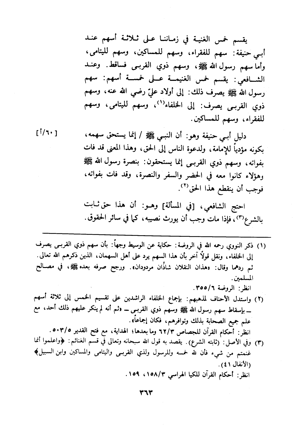 (¬3) وفي الأصل: (ثابته الشرع). يقصد به قول الله سبحانه وتعالى في قسم الغنائم: {وَاعْلَمُوا أَنَّمَا غَنِمْتُمْ مِنْ شَيْءٍ فَأَنَّ لِلَّهِ خُمُسَهُ وَلِلرَّسُولِ وَلِذِي الْقُرْبَى وَالْيَتَامَى وَالْمَسَاكِينِ وَابْنِ السَّبِيلِ} [الأنفال: 41].
