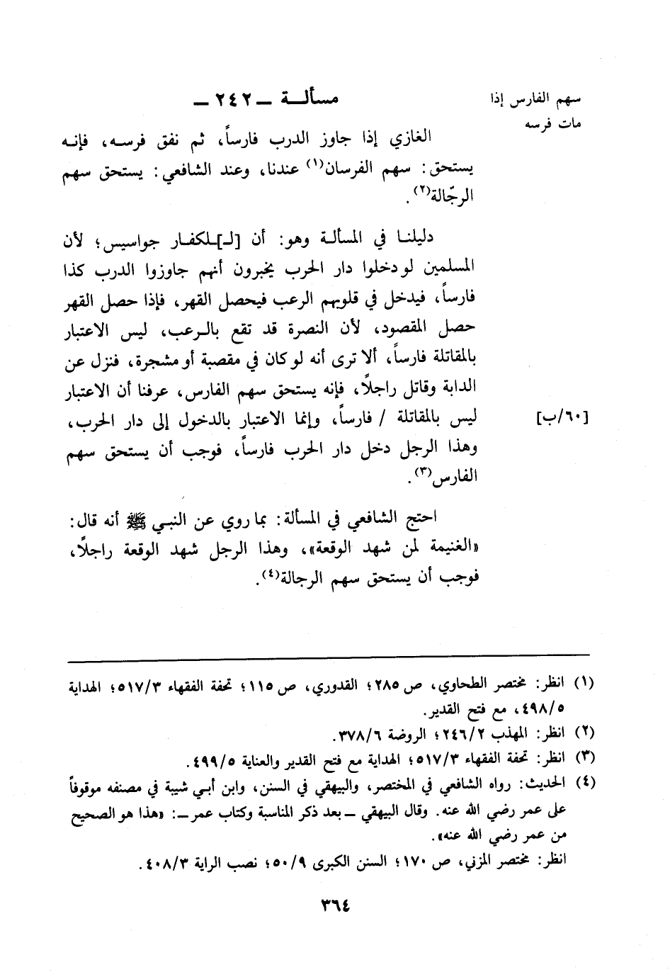 مسألة: 242 - سهم الفارس إذا مات فرسه