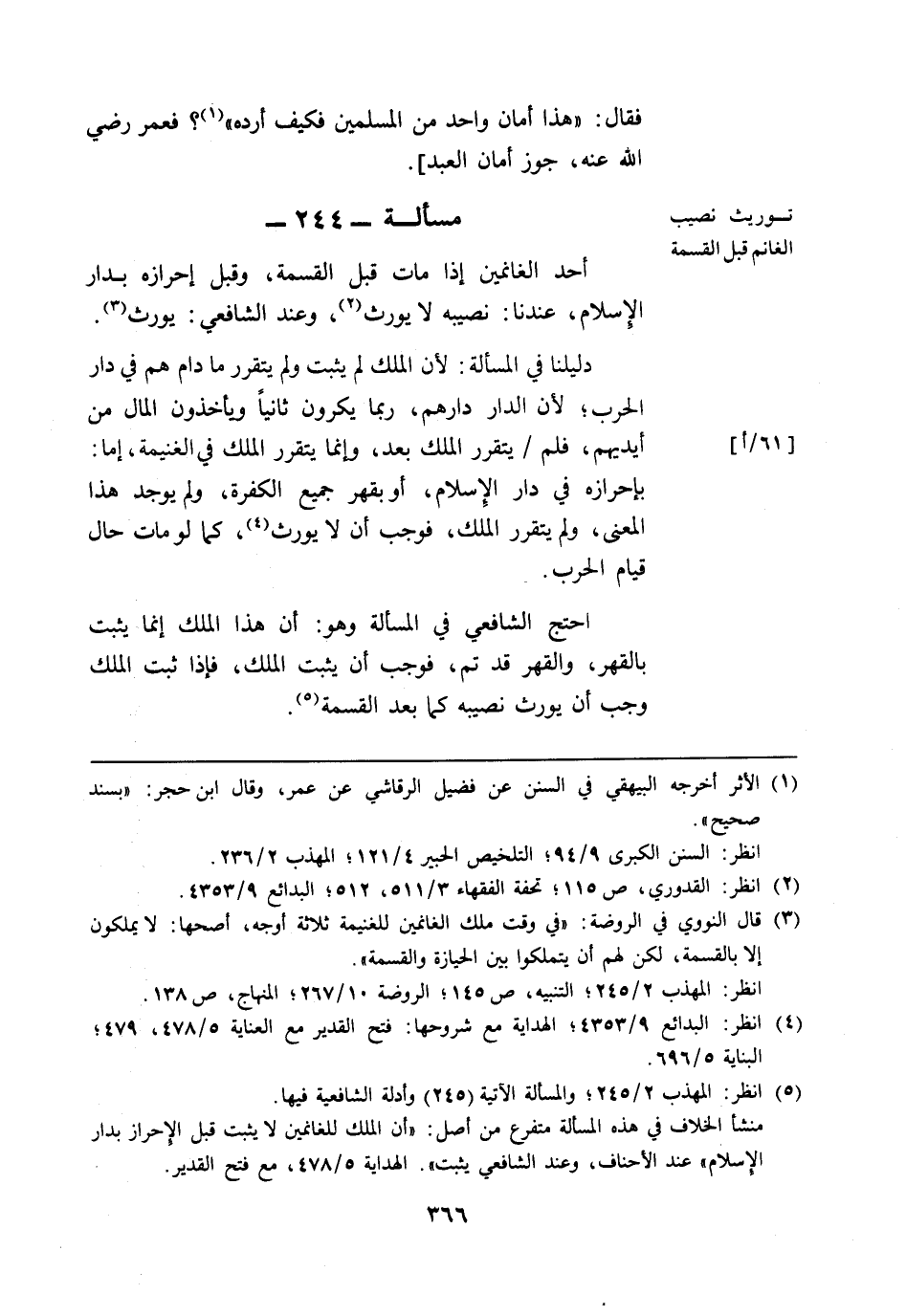 مسألة: 244 - توريث نصيب الغانم قبل القسمة