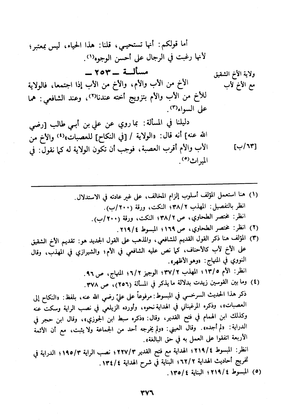 (¬4) وما بين القوسين زيدت بدلالة ما يذكر في المسألة (256)، ص 378.