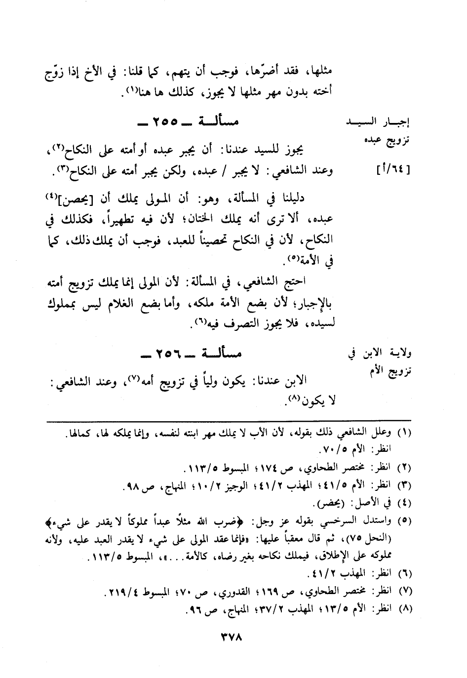 (¬7) انظر: مختصر الطحاوي، ص 169؛ القدوري، ص 70؛ المبسوط 4/ 219.