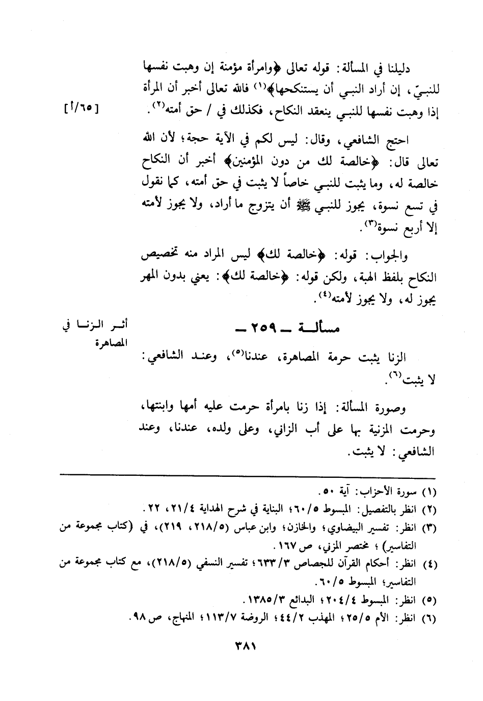 مسألة: 259 - أثر الزنا في المصاهرة