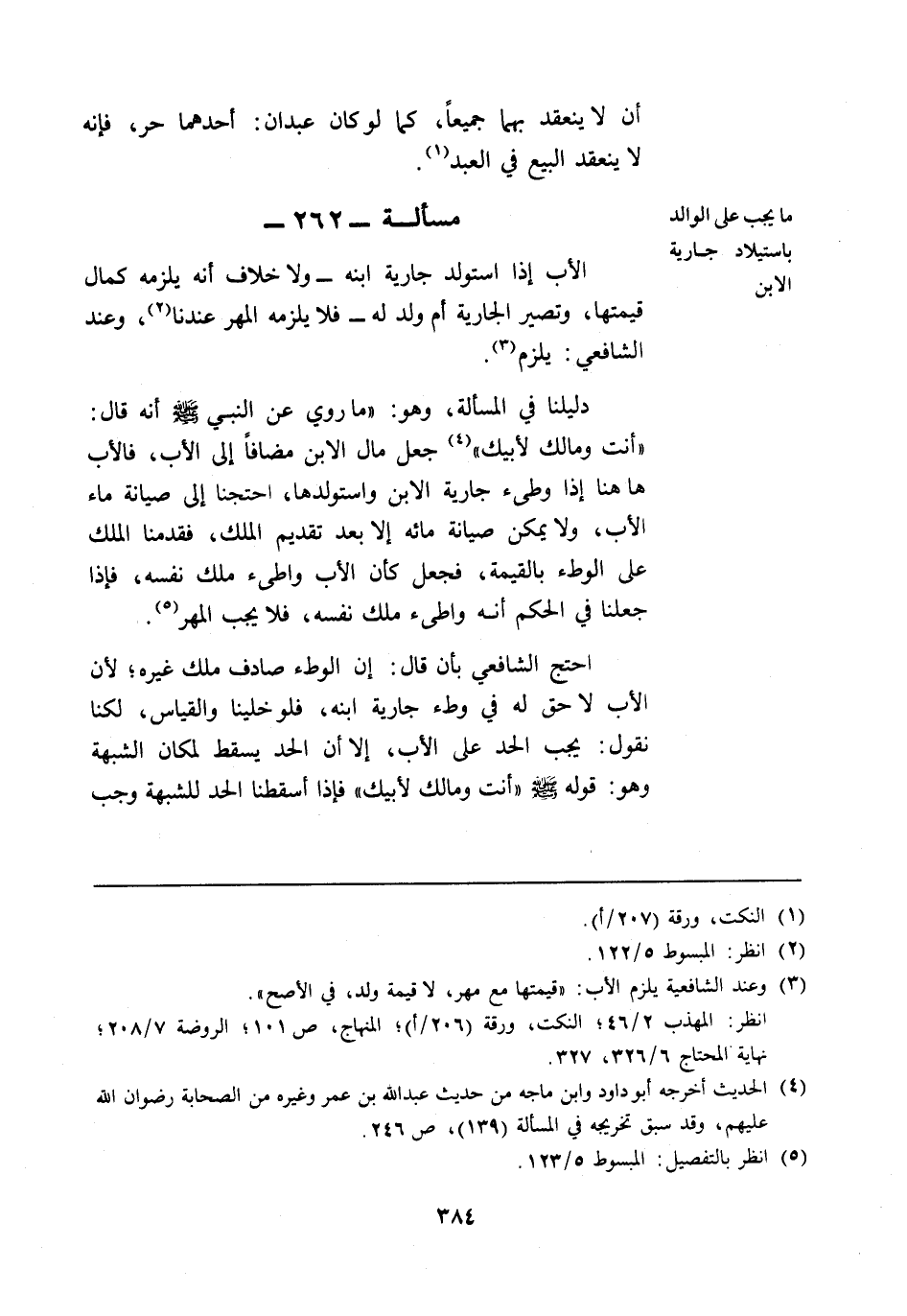 (¬5) انظر بالتفصيل: المبسوط 5/ 123.