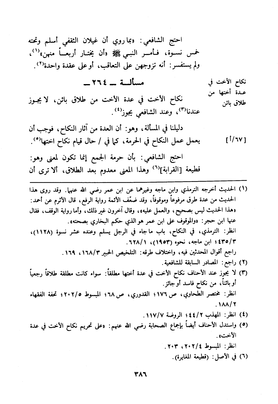 مسألة: 264 - نكاح الأخت في عدة أختها من طلاق بائن