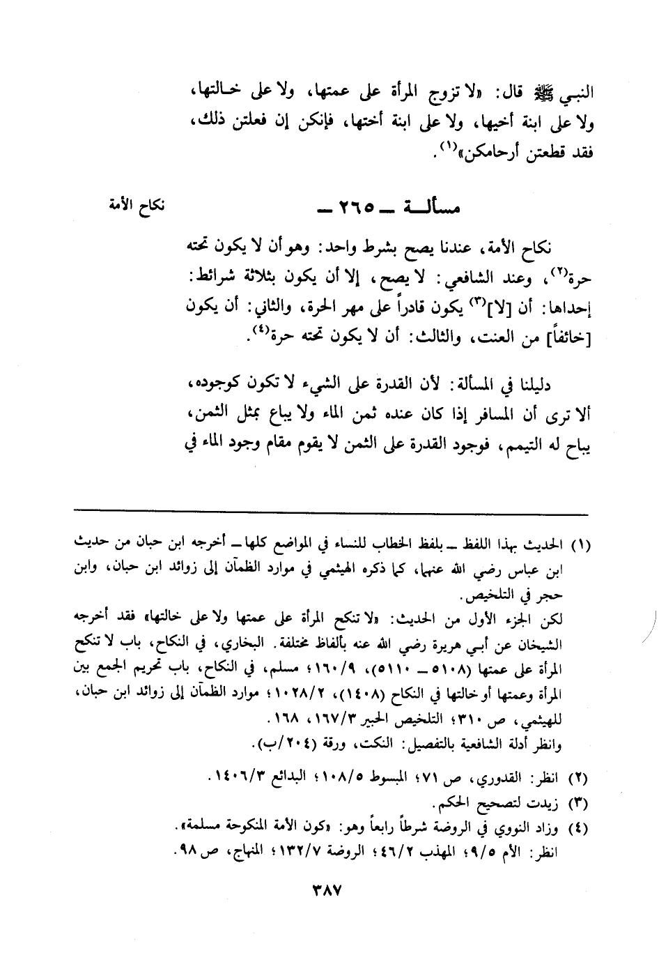 (¬4) وزاد النووي في الروضة شرطًا رابعًا وهو: "كون الأمة المنكوحة مسلمة".