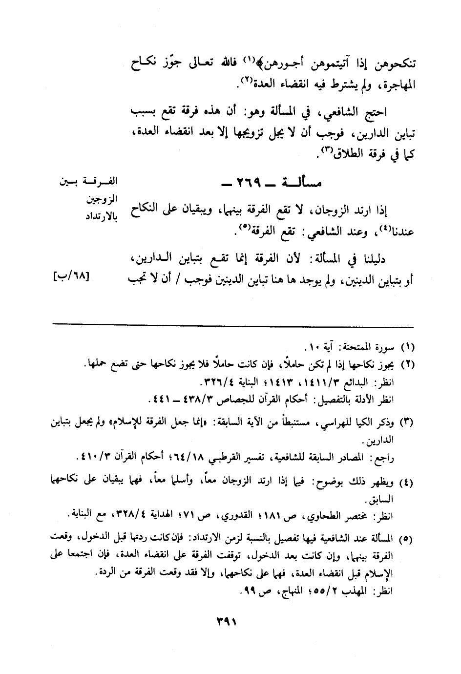 مسألة: 269 - الفرقة بين الزوجين بالارتداد