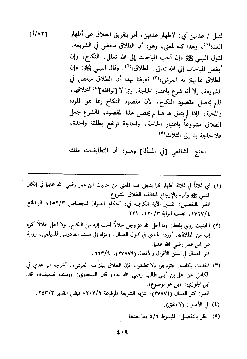 (¬2) الحديث روي بلفظ: "ما أحل الله عز وجل حلالًا أحب إليه من النكاح، ولا أحل حلالًا أكره إليه من الطلاق". أورده الهندي في كنزل العمال، وعزاه إلى مسند الفردوسي للديلمي، رواية عن ابن عمر رضي الله عنهما.