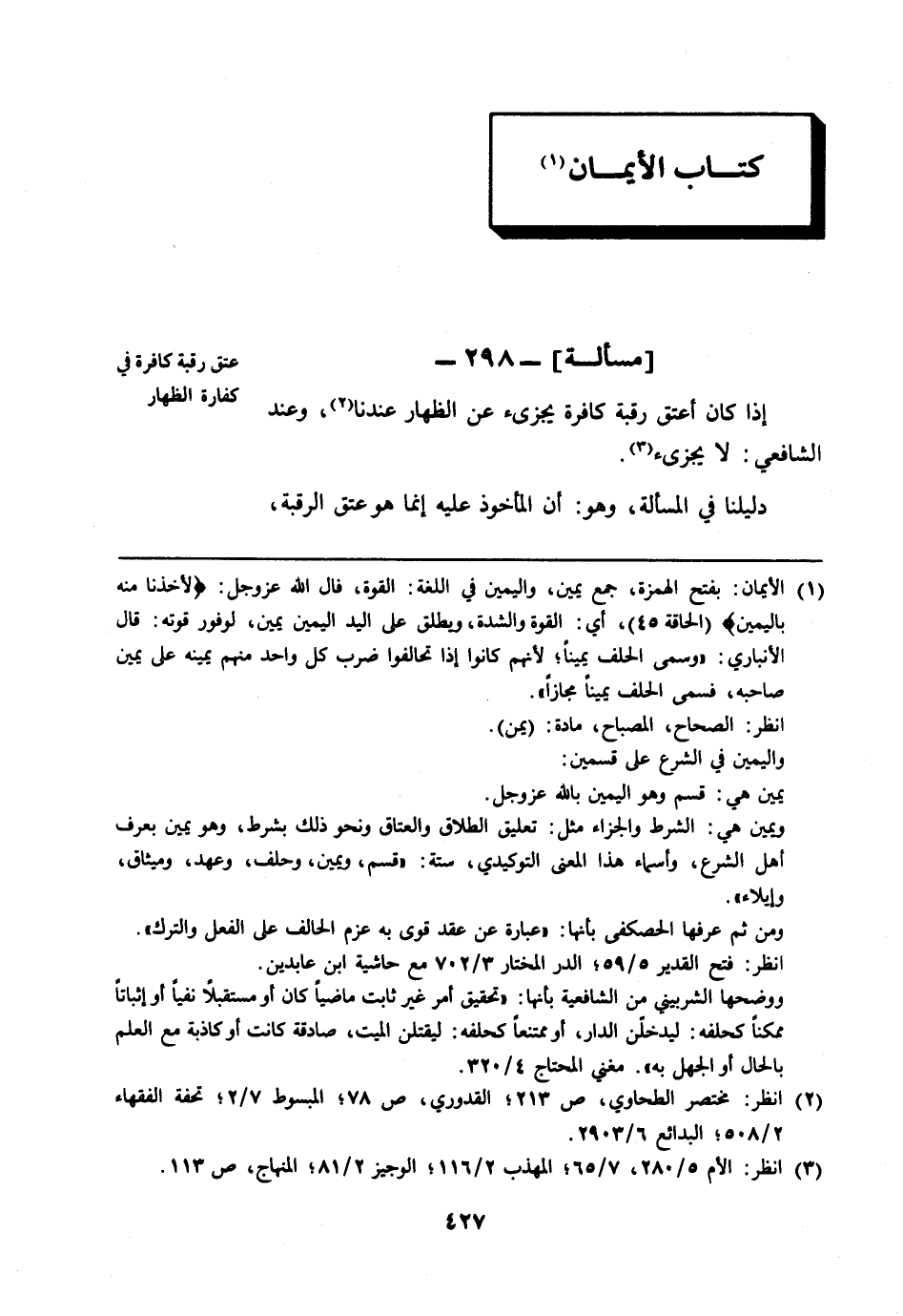 [مسألة]: 298 - عتق رقبة كافرة في كفارة الظهار