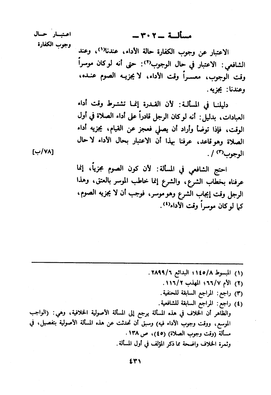 والظاهر أن الخلاف في هذه المسألة يرجع إلى المسألة الأصولية الخلافية، وهي: (الواجب الموسع، ووقت وجوب الأداء فيه) وسبق أن تحدثت عن هذه المسألة الأصولية بتفصيل، في مسألة (وقت وجوب الصلاة) (45)، ص 138.