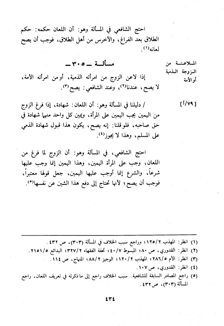 (¬5) راجع المصادر السابقة للشافعية. سبب الخلاف راجع إلى ما ذكرته في تعريف اللعان، راجع المسألة (303)، ص 432.