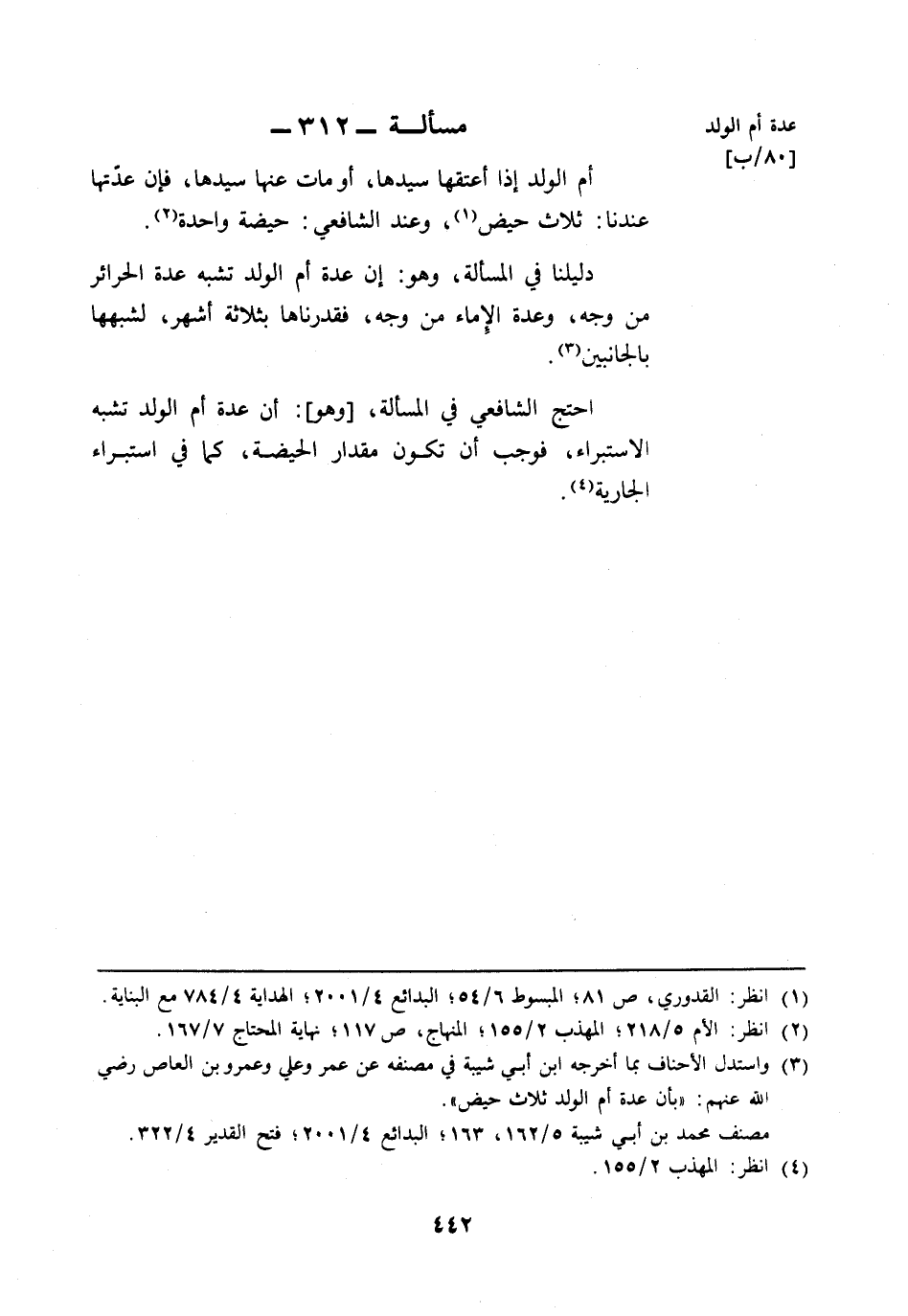 (¬1) انظر: القدوري، ص 81؛ المبسوط 6/ 54؛ البدائع 4/ 2001؛ الهداية 4/ 784 مع البناية.