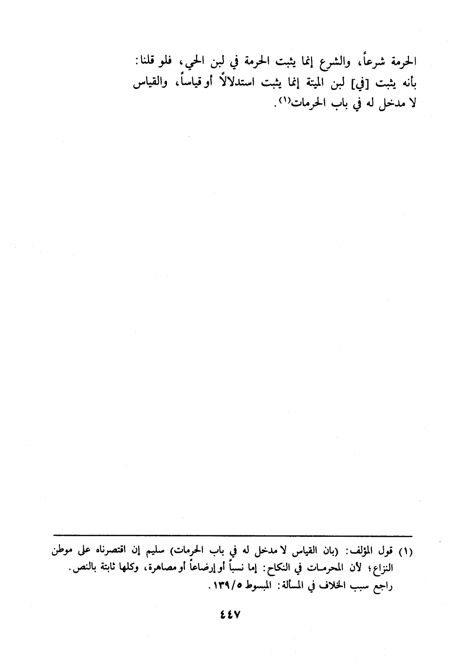 الحرمة شرعًا، والشرع إنما يثبت الحرمة في لبن الحي، فلو قلنا: بأنه يثبت [في] لبن الميتة إنما يثبت استدلالًا أو قياسًا، والقياس لا مدخل له في باب الحرمات (¬1).