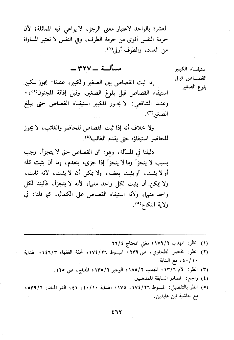 مسألة: 327 - استيفاء الكبير القصاص قبل بلوغ الصغير