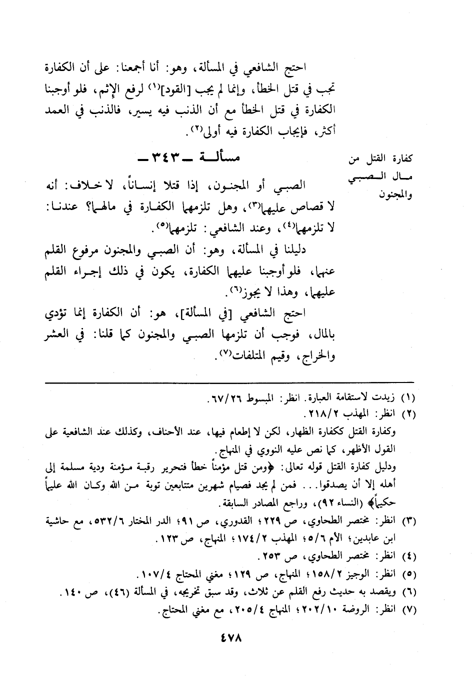 مسألة: 343 - كفارة القتل من مال الصبي والمجنون