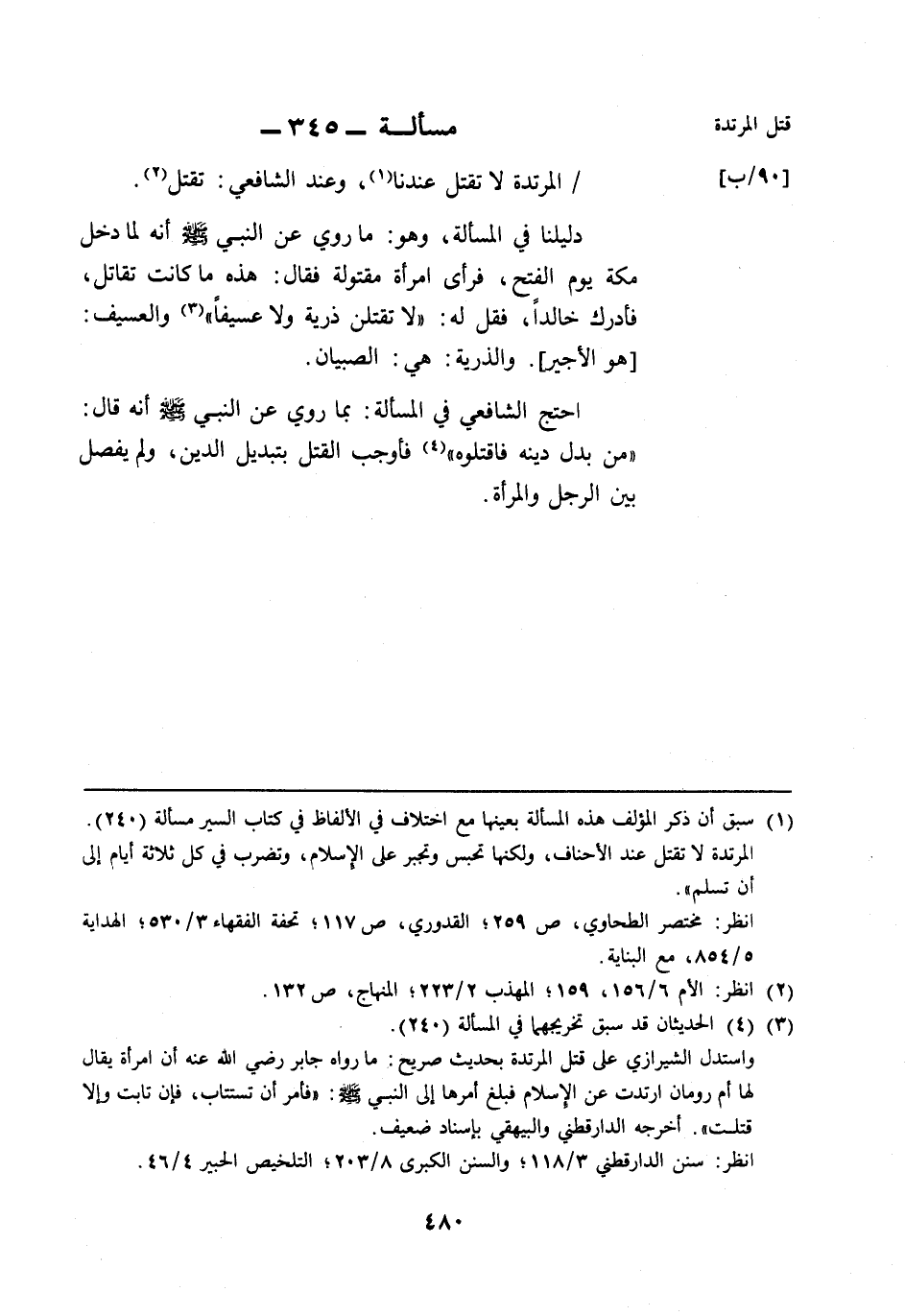 مسألة: 345 - قتل المرتدة