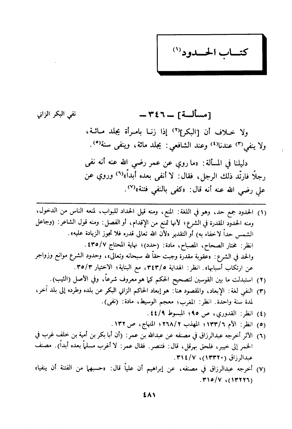 (¬7) أخرجه عبد الرزاق في مصنفه، عن إبراهيم أن عليًا قال: "حسبهما من الفتنة أن ينفيا" (13226)، 7/ 315.