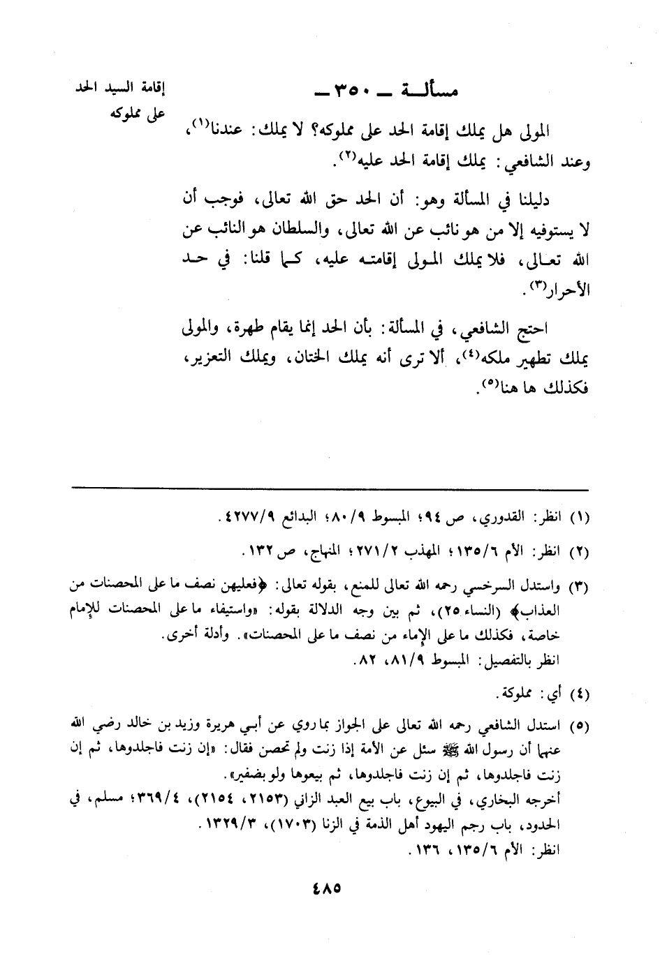 مسألة: 350 - إقامة السيد الحد على مملوكه