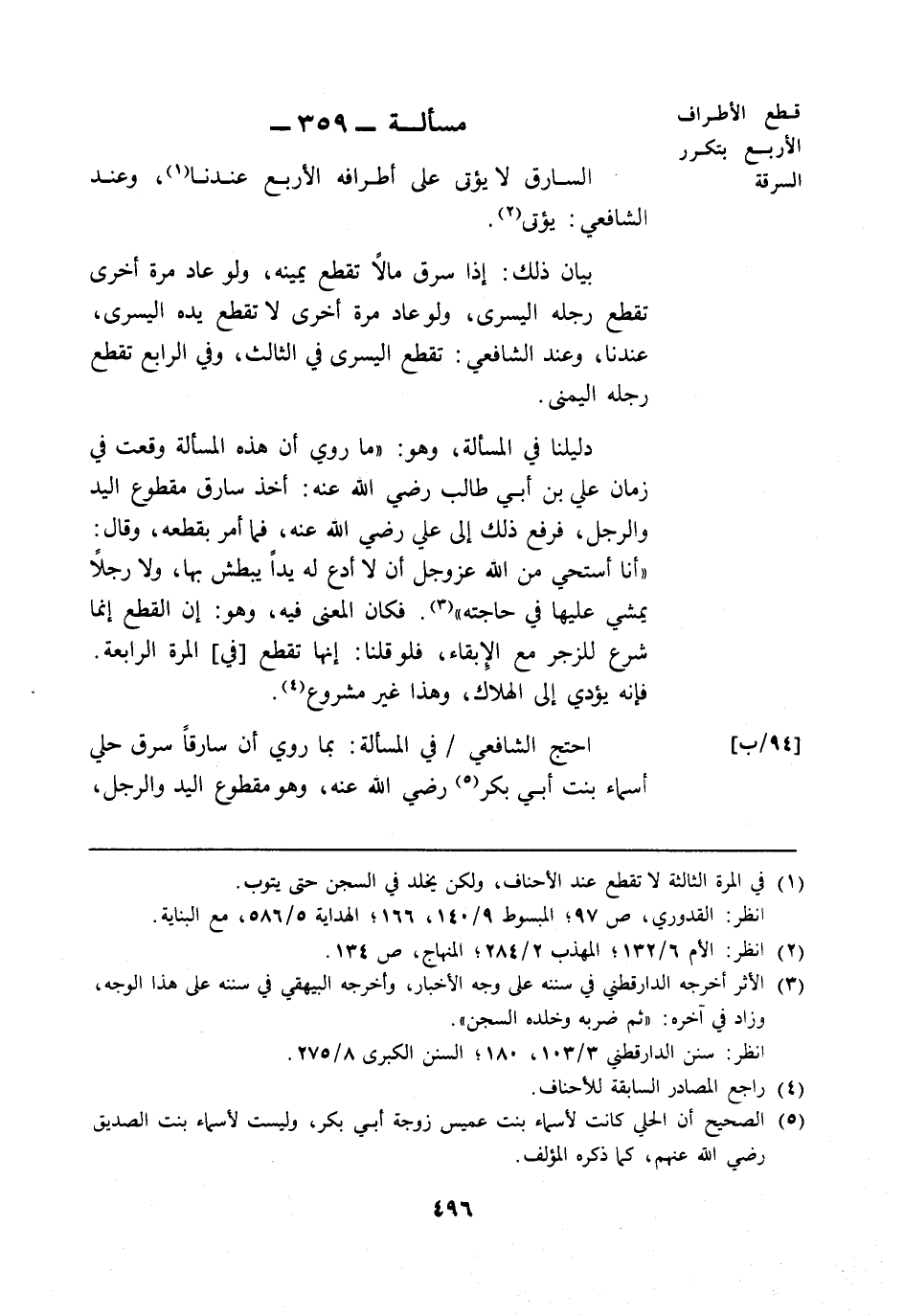 مسألة: 359 - قطع الأطراف الأربع بتكرر السرقة