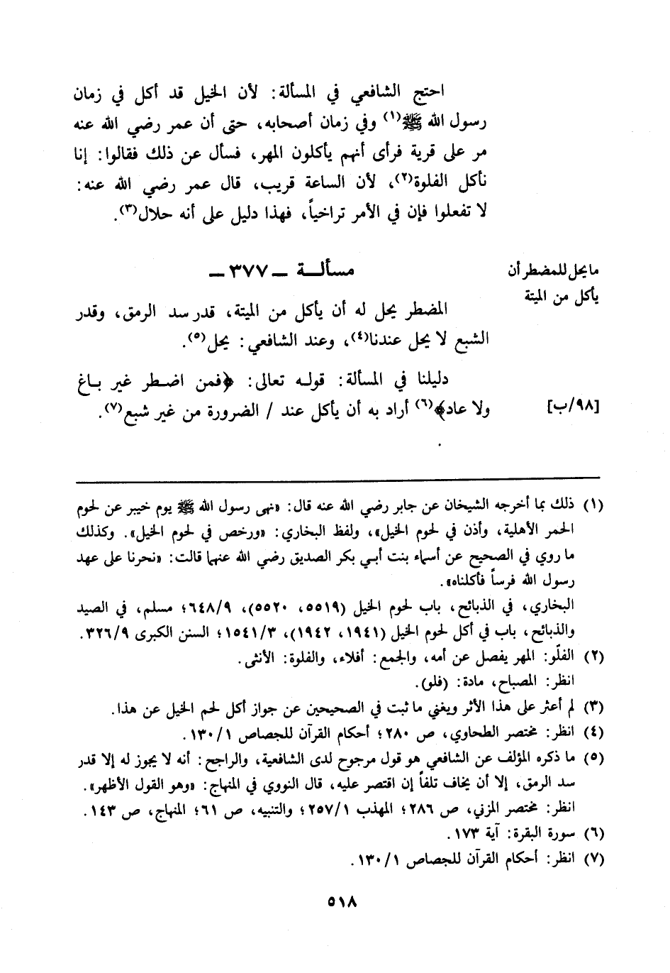 مسألة: 377 - ما يحل للمضطر أن يأكل من الميتة
