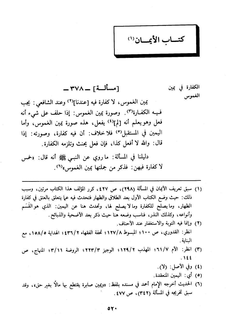 (¬6) الحديث أخرجه الإمام أحمد في مسنده بلفظ: "ويمين صابرة يقتطع بها مالًا بغير حق"، وقد سبق تخريجه في المسألة (342)، ص 477.