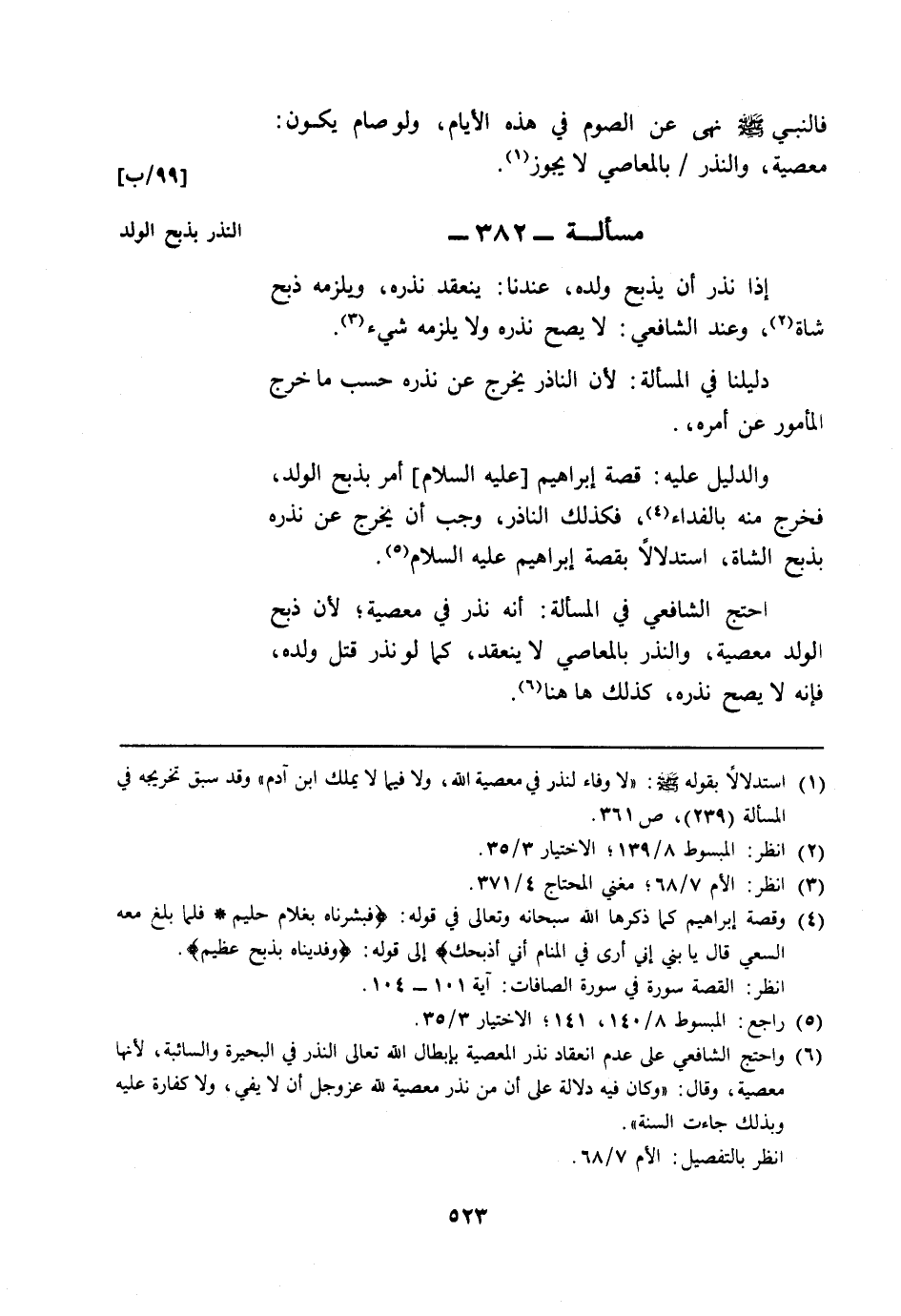 مسألة: 382 - النذر بذبح الولد