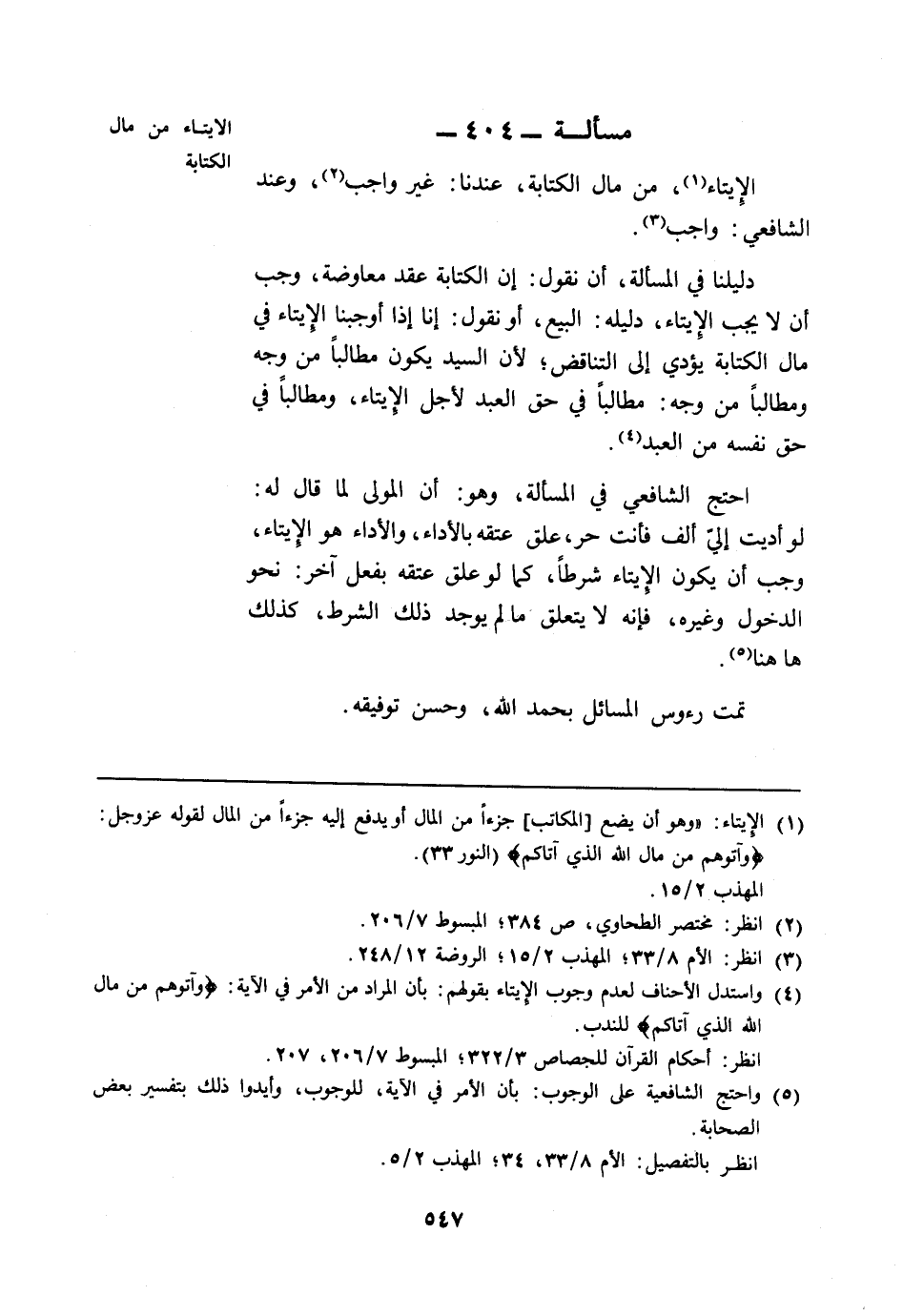 مسألة: 404 - الإيتاء من مال الكتابة