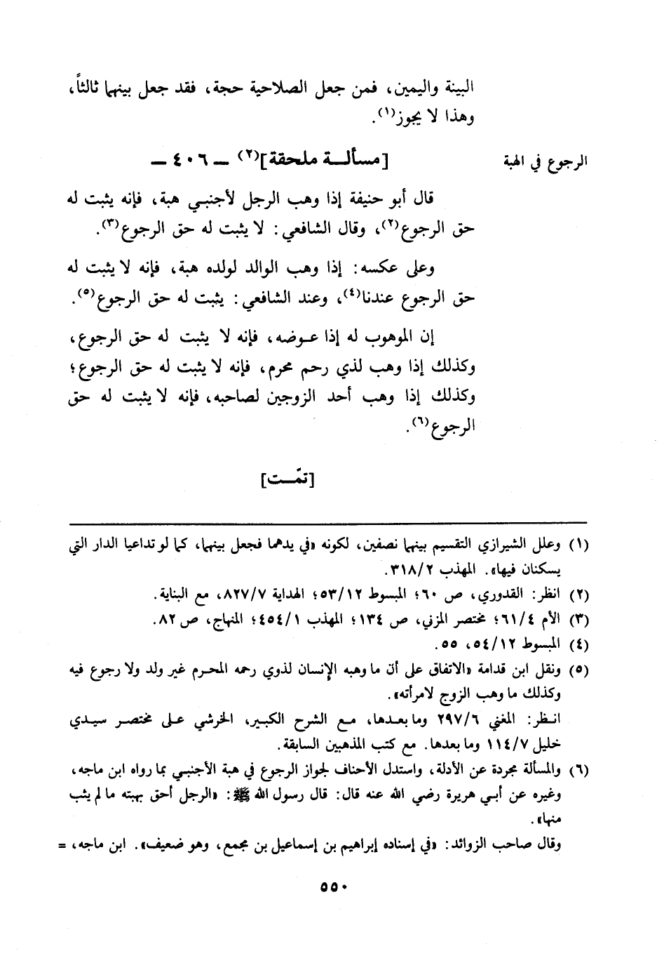 [مسألة ملحقة] (2): 406 - الرجوع في الهبة
