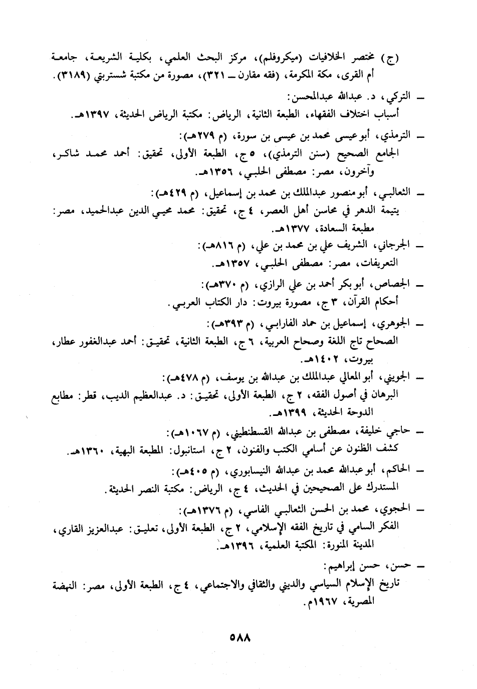 (ج) مختصر الخلافيات (ميكروفلم)، مركز البحث العلمي، بكلية الشريعة، جامعة أم القرى، مكة المكرمة، (فقه مقارن - 321)، مصورة من مكتبة شستربتي (3189).