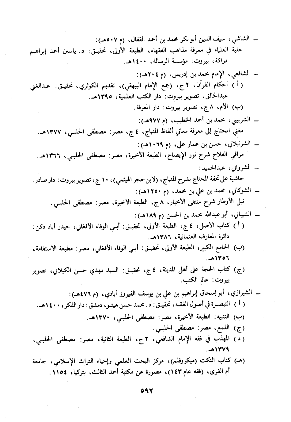 (د) المهذب في فقه الإمام الشافعي، 2 ج، الطبعة الثانية، مصر: مصطفى الحلبي، 1379 هـ.