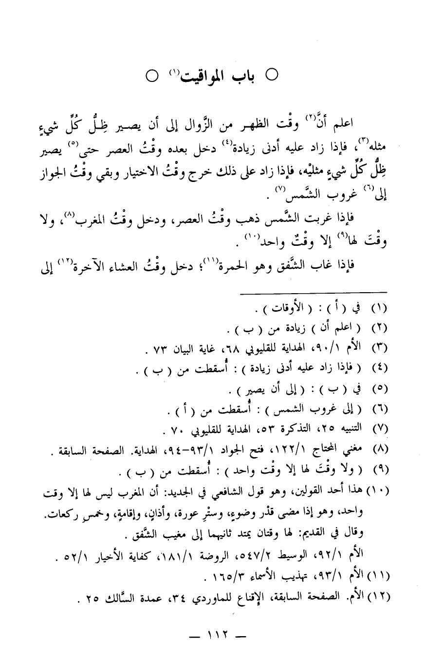 12 الأم. الصفحة السابقة، الإقناع للماوردي 34، عمدة السالك 25.