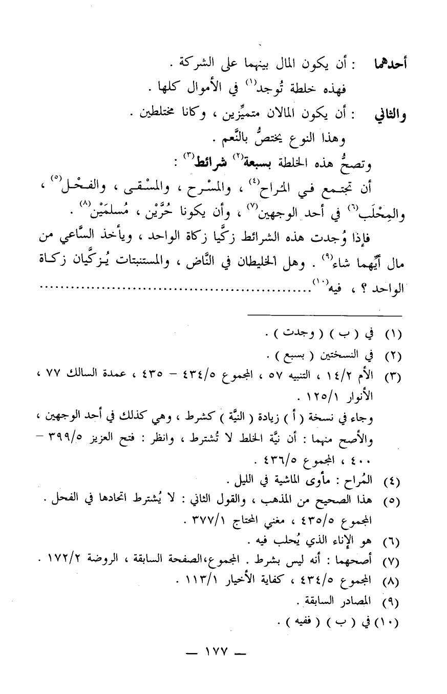 أن تجتمع في المُراح4، والمسرح، والمسقى، والفحل5، والمِحْلَب6 في أحد الوجهين7، وأن يكونا حُرّين، مسلمين8.